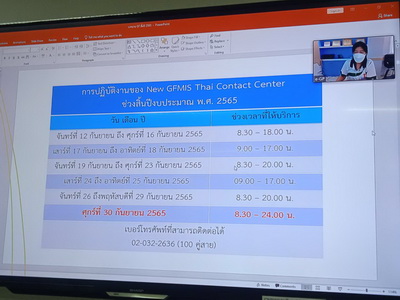 | การประชุมชี้แจงการปฏิบัติงานในระบบ New GFMIS Thai ช่วงสิ้นปีงบประมาณ พ.ศ.2565 |
